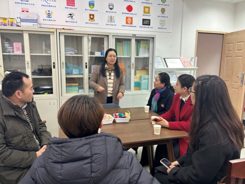 广东外语外贸大学国际学习中心负责人向我公司来访人员介绍了该学习中心的课程安排、教学管理、员工管理等情况,还分享了员工留学国外的后续管理经验。