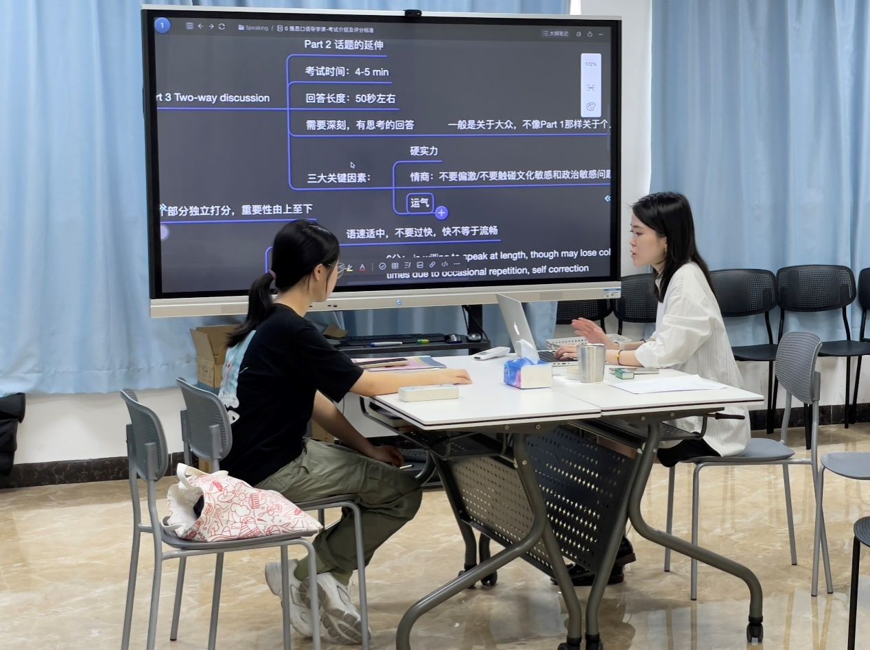 截至7月18日,目前有仲恺雅思暑期集训强化班及冲刺班同时开课,而更具有学习针对性的一对一专属VIP课程同样穿插进行。全方位、多维度,以专业态度及系统教学,为学员冲击雅思高分保驾护航。