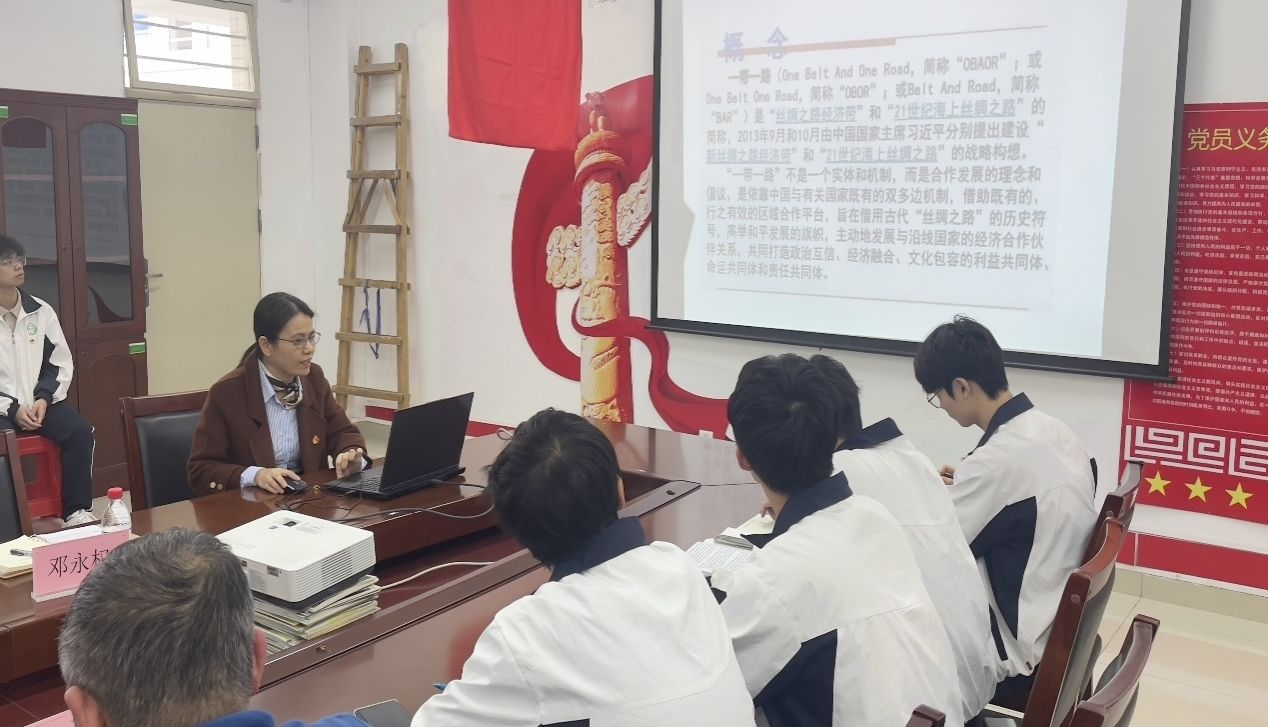 太阳成tyc122cc集团教工党支部书记刘敏姬讲授《“一带一路”时代背景、成果、及未来发展》主题党课,她以“一带一路”的时代背景、国内背景作铺垫,以第三届高峰论坛为切入点,讲述了“一带一路”过去十年来的成果,并结合习近平总书记提出的中国支持高质量共建“一带一路”的八项行动,对在座党员提出殷切希望,指出当代老员工应积极提高综合素质,深化思想觉悟,拓展国际视野,厚植家国情怀,提升专业水平,完善交往能力,为新时代中国特色社会主义事业贡献青春力量。
